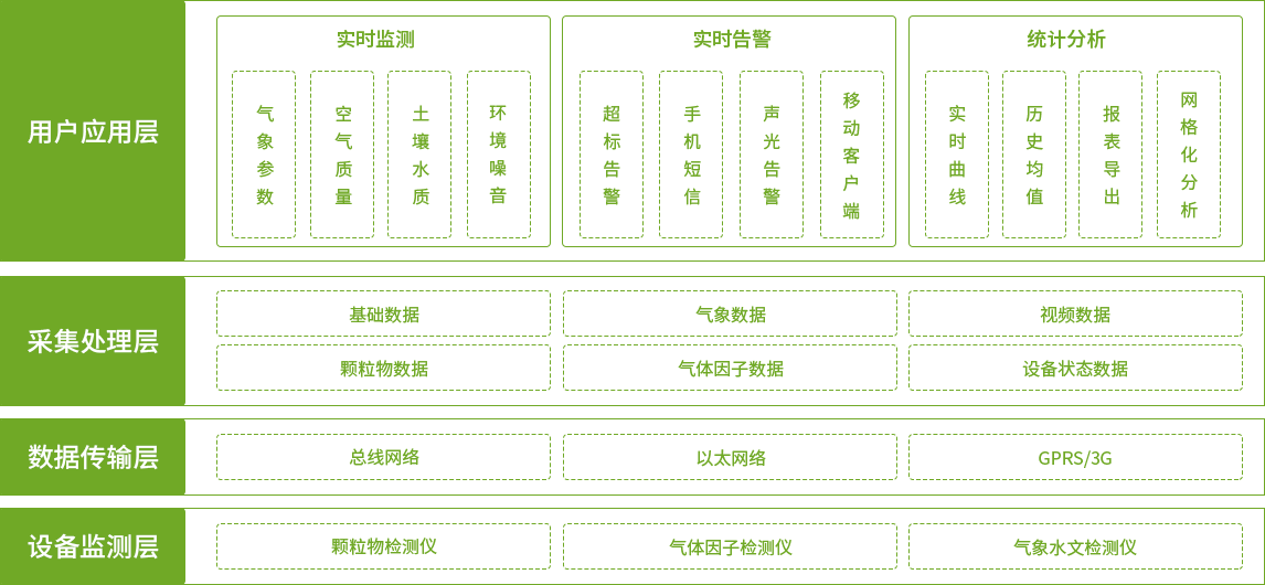 ①现场监测设备层:主要包括各类现场环境因子采集和监测设备